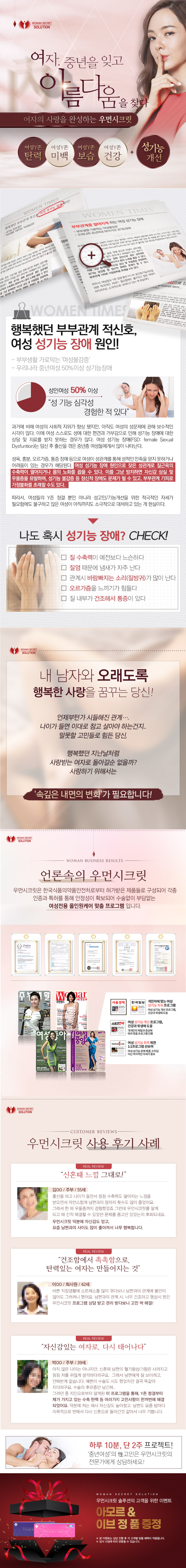 여성 성불감증 질탄력 원인 및 치료방법 우먼시크릿 소홀했던 관계 회복방법 여성 성불감증은 여성들이 성적으로 흥미를 느끼지 못하거나 성적인 활동에 참여하는 데 어려움을 겪는 상태를 나타냅니다. 이는 다양한 이유에 기인할 수 있으며 신체적, 심리적, 사회적인 측면에서 다양한 영향을 받을 수 있습니다. 아래는 여성 성불감증의 주요 원인과 치료방법에 대한 정보입니다. 여성 성불감증의 주요 원인: 생리학적 원인: 호르몬 수준 변화: 여성의 호르몬 수준 변화는 성욕에 영향을 미칠 수 있습니다. 예를 들어, 임신, 출산, 미래의 갱년기 등이 여성의 성욕에 변화를 일으킬 수 있습니다. 정신적 원인: 스트레스 및 불안: 일상적인 스트레스, 불안, 우울 등은 성욕 감소로 이어질 수 있습니다. 자아 이미지 문제: 몸에 대한..